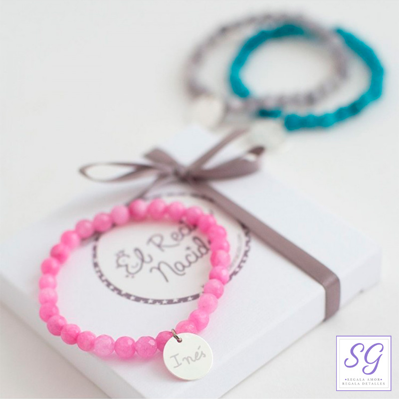 Pulsera piedras naturales para mamá. Personalizada con nombre del bebé.